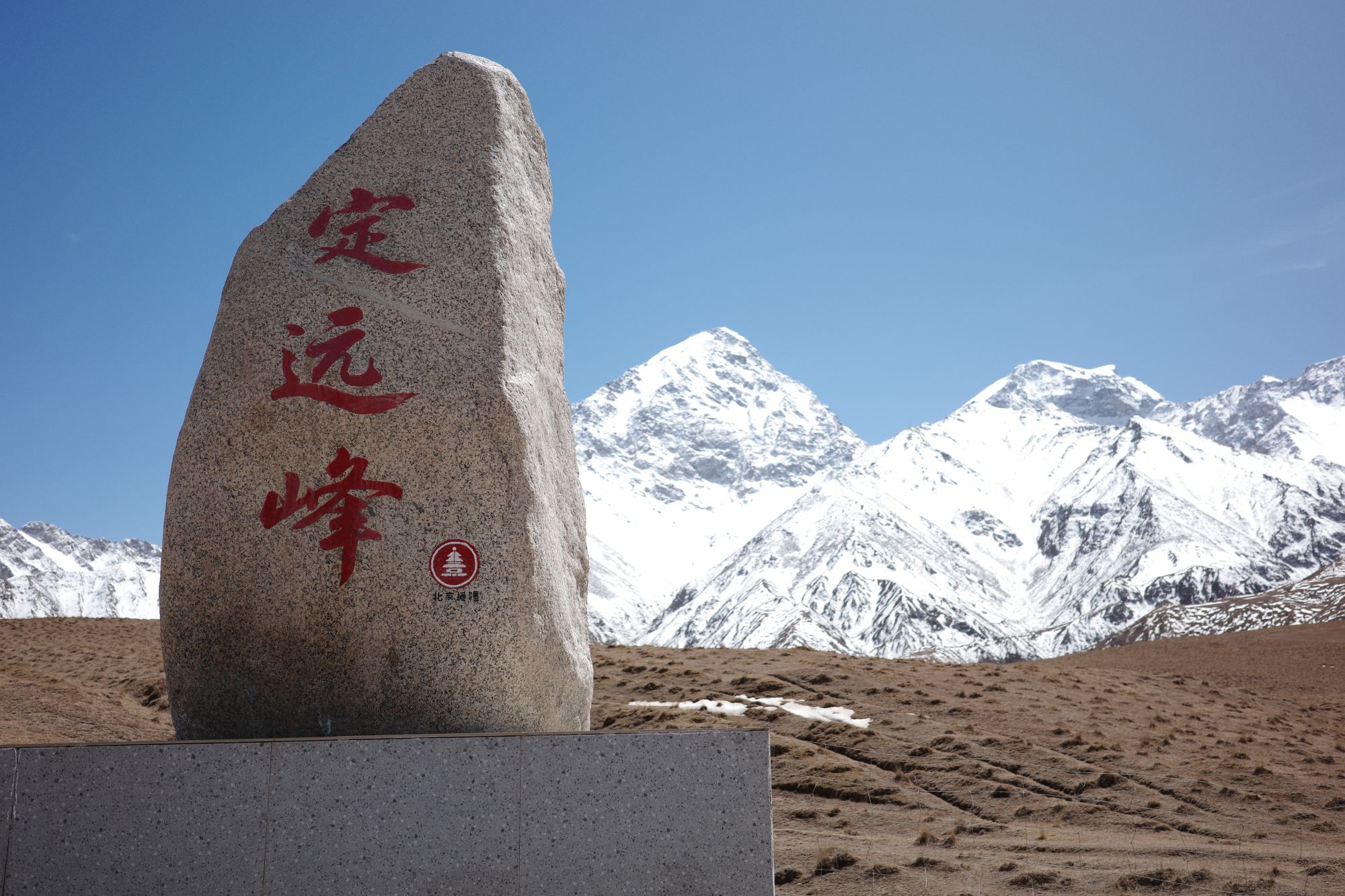 在昆仑山超3000米海拔处,“定远峰”的石碑伫立在皑皑雪山之前,右下角是一颗天坛祈年殿标识,印有“北京援疆”四个字。