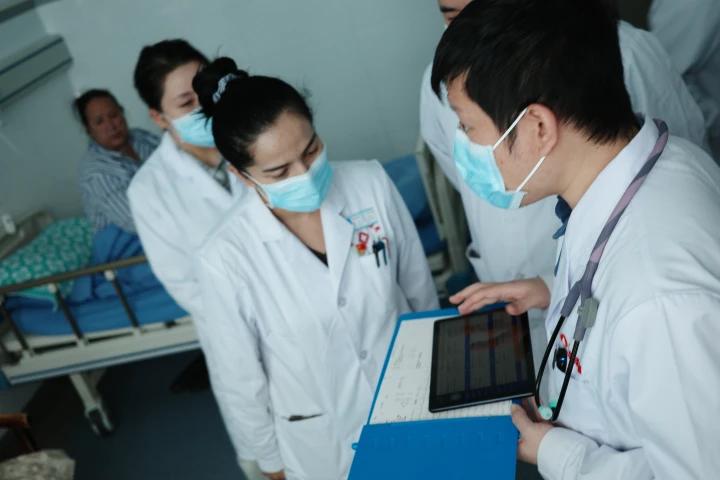 4月12日中午,徐冠一为两位即将接受心脏手术的新疆患者查房,几位当地医生跟在他身边,在询问专业问题的同时,也客串一下维语翻译——这是与在内地工作的不同之处,许多当地少数民族同胞还无法熟练使用汉语。